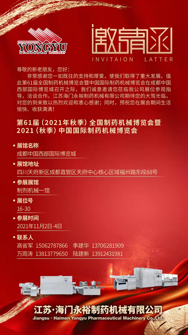 第61屆(2021年秋季)全國製藥機械博覽會暨中國國際製藥機械(xiè)博覽會即將啟幕