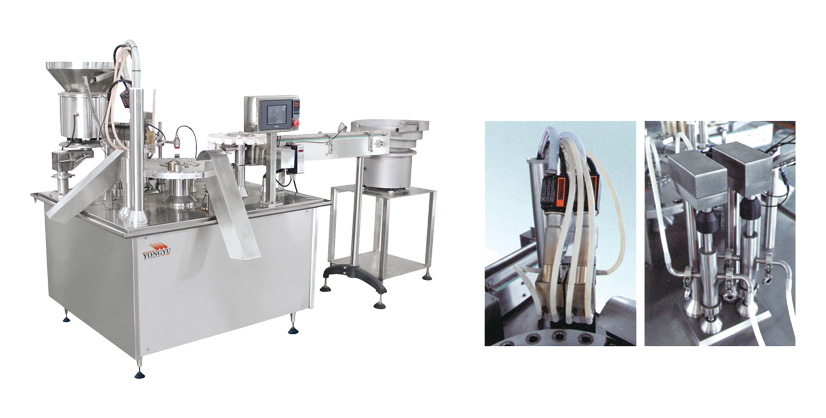 本機組符合“cGMP”要求,適用(yòng)於新型(xíng)易折塑料瓶的灌裝與熱(rè)封口,是參照國外同類機(jī)型更新設計而成。 本機(jī)通過自動上瓶、底(dǐ)部灌裝、自動上蓋、熱熔式底部封口、機械手(shǒu)送出瓶等一係列特製工序後(hòu)完成灌封 工作,是國內口服液灌裝生產的理想設(shè)備。