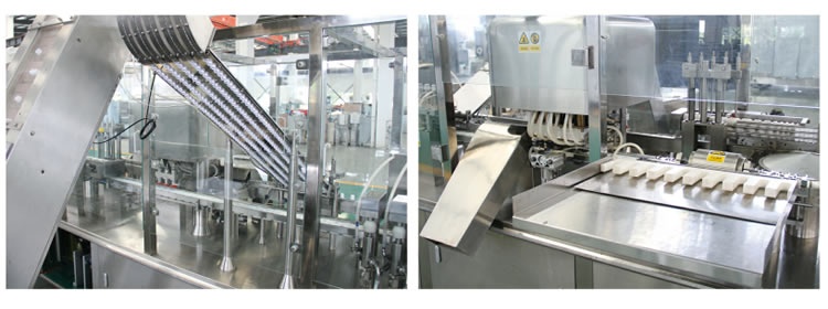 本機通過自(zì)動(dòng)上瓶、底部灌裝、自動上蓋、熱熔式底部封口、氣動手指夾送出瓶等一係列特(tè)製工序完成灌封工作,可做為國內口服液灌裝生產理想設備。